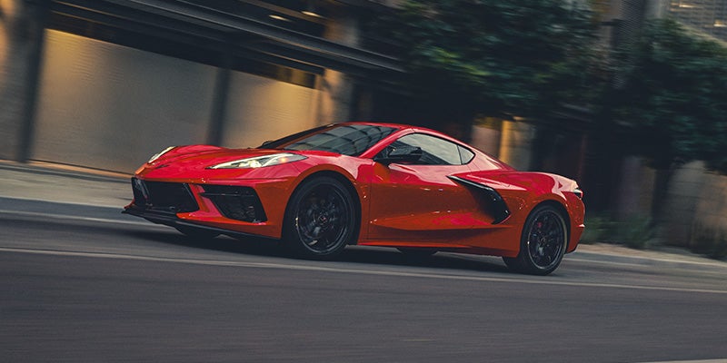 The mid-engine Stingray features a naturally aspirated V8 positioned behind the driver, putting more power to the rear wheels where it matters most. And with a quarter-mile time of just 11.2 seconds6 and an available 495 horsepower,7 Stingray is a thrill ride, day or night.